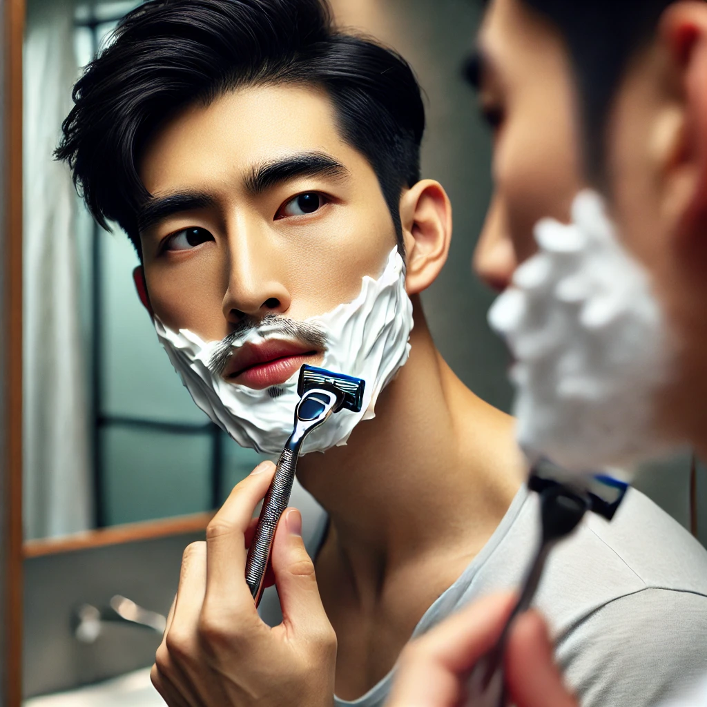 ☑ 면도 방향을 수염이 난 방향으로 먼저 진행하고, 필요하면 반대 방향으로 마무리