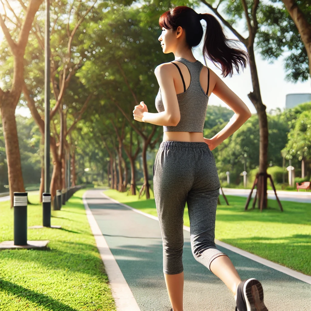 척추를 길게 유지하며 상체를 약간 앞으로 기울이고, 팔을 가볍게 휘두르는 자세가 이상적입니다.