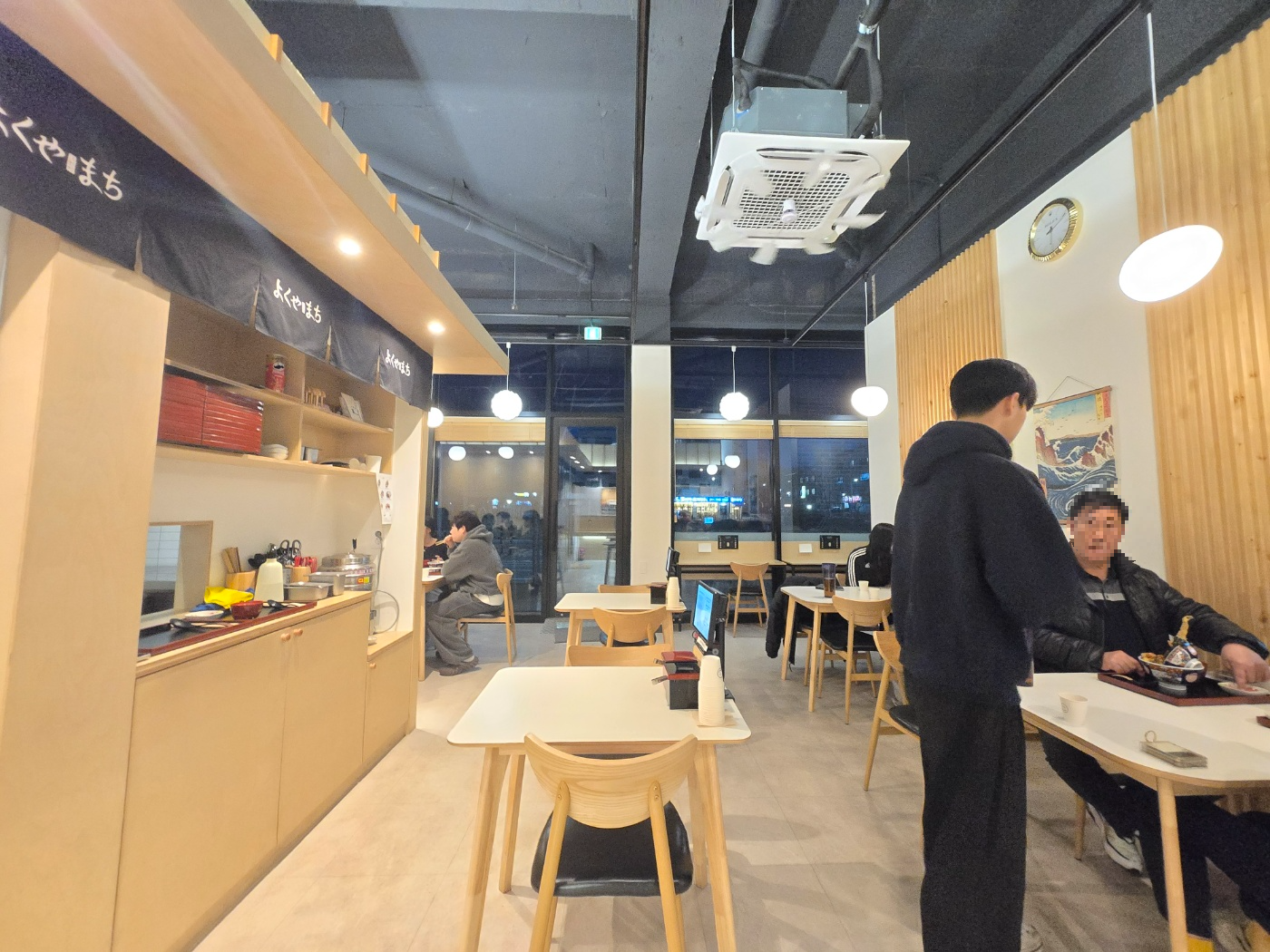 청주 동남지구에 위치한 요쿠야마치는 일본식 텐동과 소바를 전문으로 하는 곳이다. 내부는 깔끔하고 일본풍 인테리어가 돋보이며, 벽면에는 일본식 장식과 함께 람네 음료들이 진열되어 있어 현지 분위기를 자아낸다.