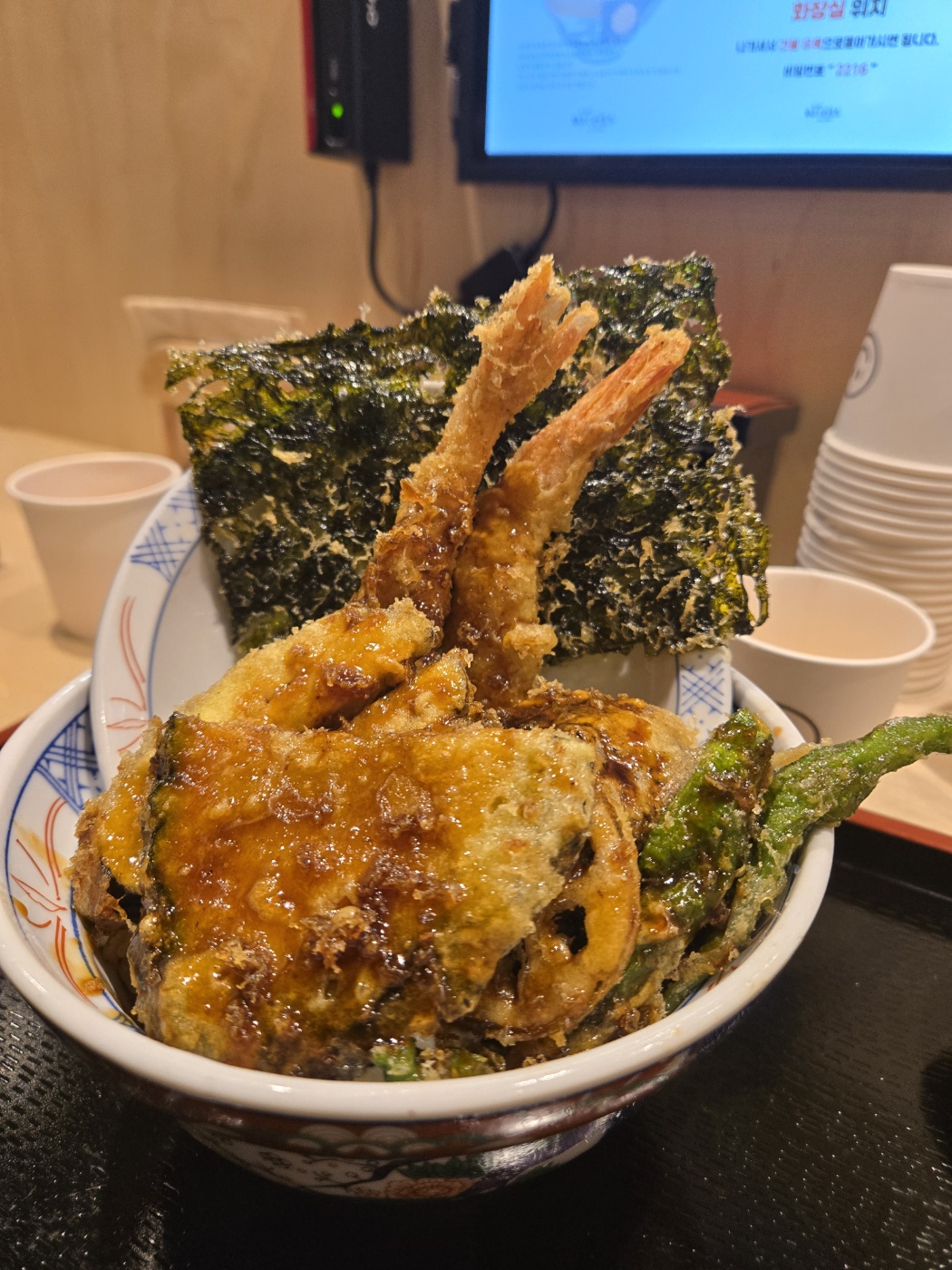 요쿠야텐동은 기본 텐동 메뉴로, 새우튀김을 비롯한 다양한 튀김이 가득 담겨 있다. 튀김의 바삭함이 오래 유지되었고, 밥과 함께 먹었을 때 간이 적당해 부담 없이 즐길 수 있었다. 특히 김 튀김이 정말 바삭하고 고소해서 인상적이었다. 텐동 소스와도 잘 어우러져 마지막까지 맛있게 먹을 수 있었다.